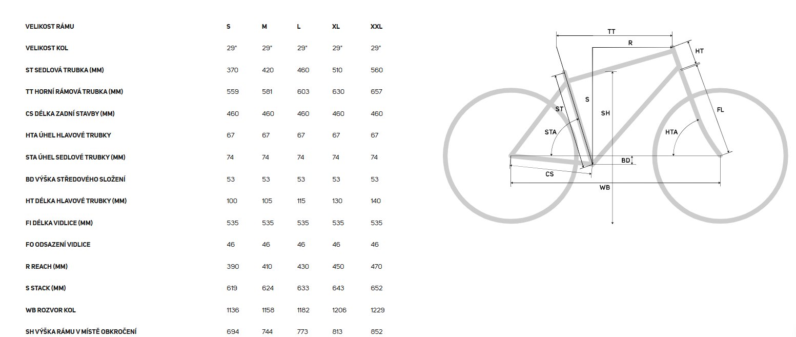 Nový hliníkový rám s vylepšenou geometrií zajišťuje lepší ovladatelnost v terénu a spolu s vidlicí RockShox Judy 120 mm přináší spoustu zábavy mimo silnice. Rychlá 29" kola s plášti Maxxis 2,4" zaručují plynulou jízdu, řazení Shimano CUES nabízí široký rozsah převodů a spolehlivý systém s jednopřevodníkem. Hydraulické kotoučové brzdy poskytují jistý výkon za všech podmínek a připraví tě na každý trail.